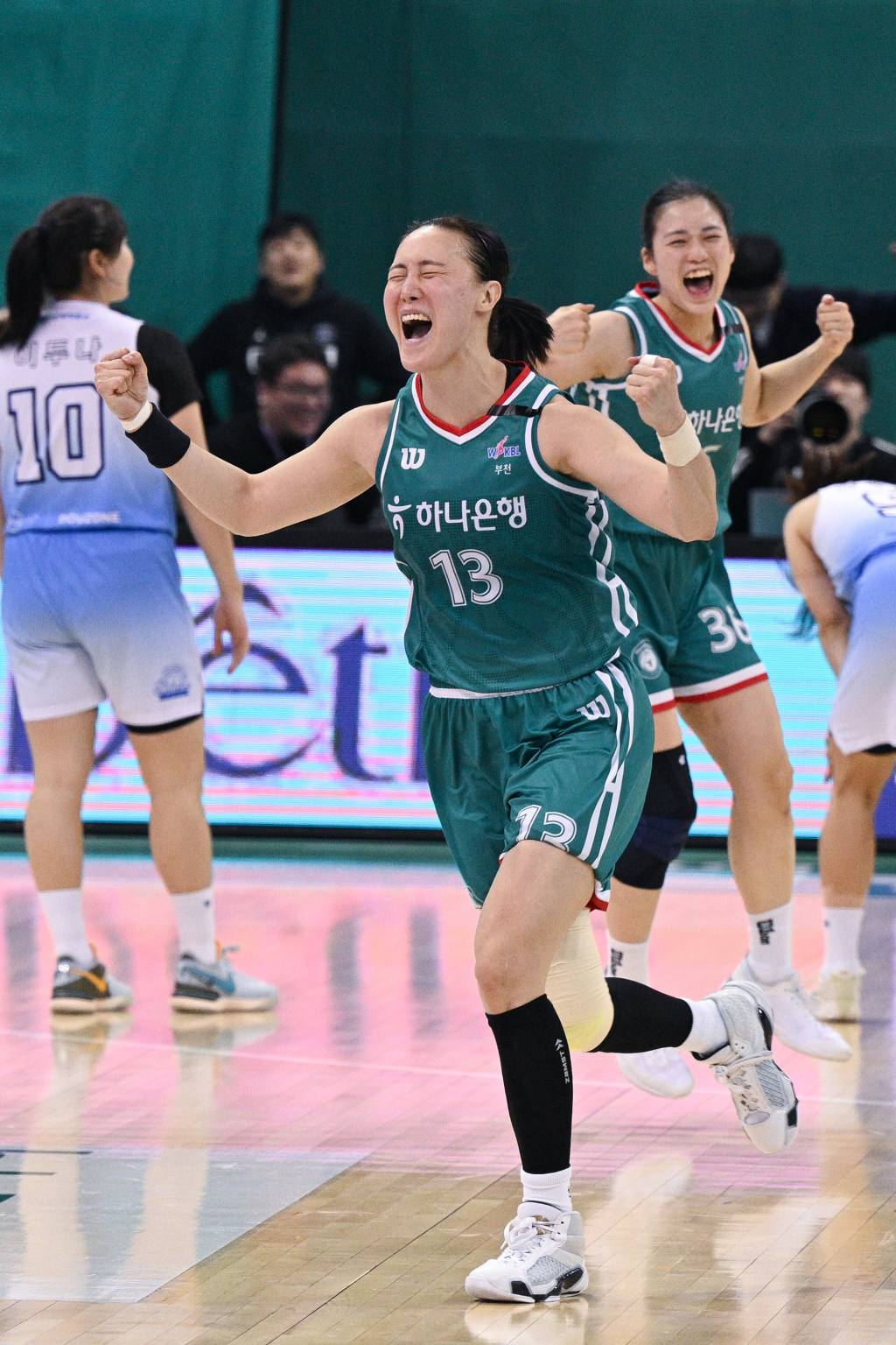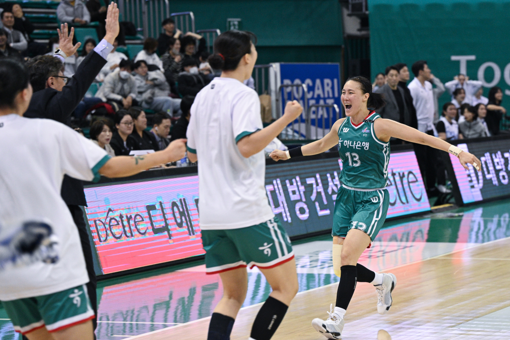 하지만 신지현이 추가 자유투를 놓쳤고 이시다 유즈키가 볼을 잡았다. 남은 시간은 5초 남짓. 유즈키는 속공 상황에서 재빨리 김정은에게 패스했고 김정은은 이두나를 제친 뒤 슛을 쐈다. 볼이 림을 가르며 극적인 버저비터가 완성됐다. 김정은은 두 주먹을 불끈 쥐고 포효하며 김도완 감독에게 달려가 껴안았다.