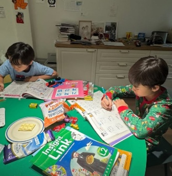 공개된 사진 속 윌리엄과 벤틀리가 책상에 앉아 숙제 중인 모습이 담겼다. 두 사람은 책을 잔뜩 펴놓고 진지한 표정으로 임하고 있어 눈길을 끌었다.