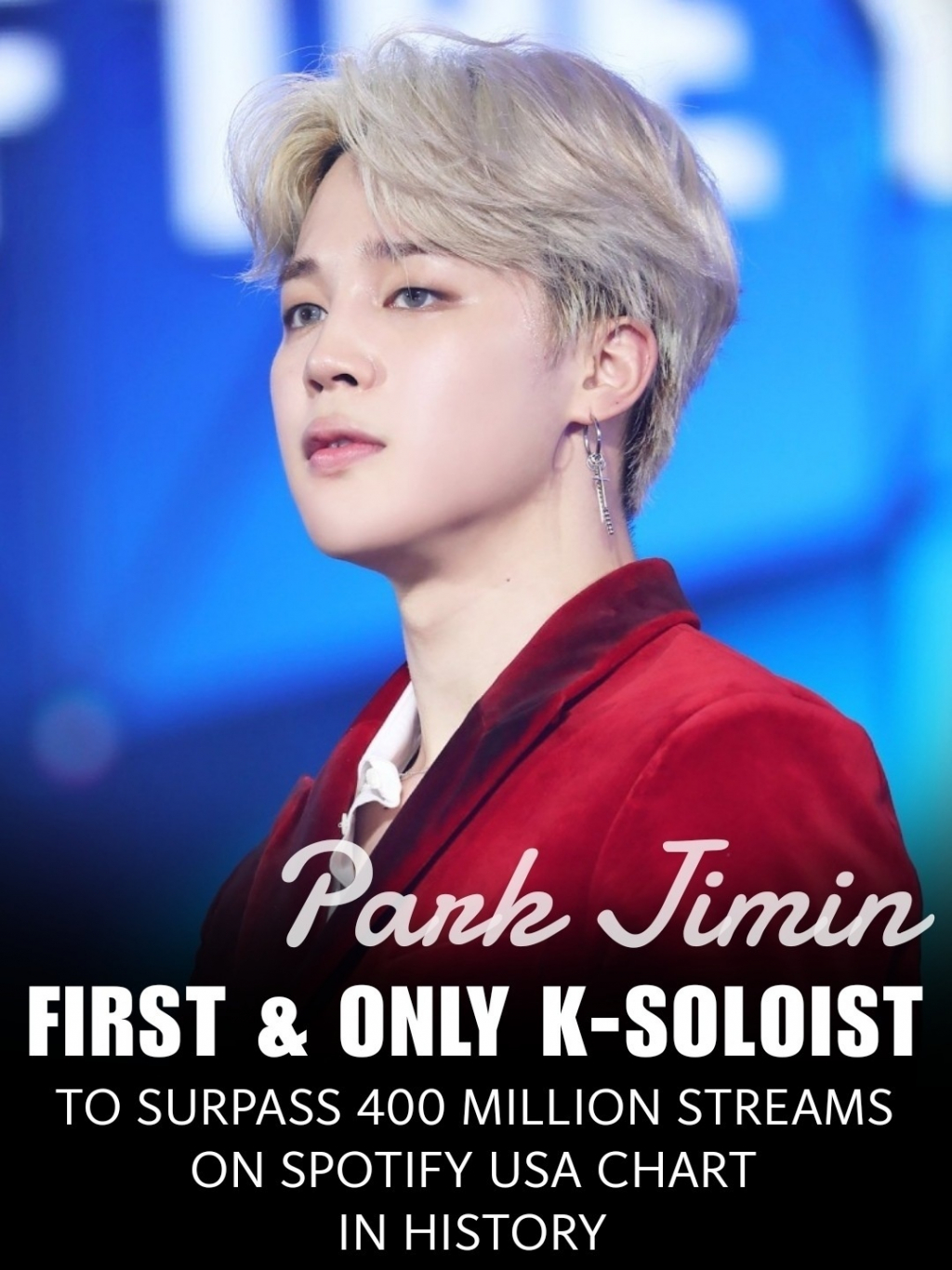 이에 힘입어 지민은 스포티파이 미국 차트 역사상 4억(filtered) 스트리밍 이상을 달성한 최초이자 유일한 K팝 솔로 가수로 이름을 올렸으며 차트에 카운팅 되는 스트리밍 횟수는 무한 루핑을 제외하는 방식으로 집계된다.