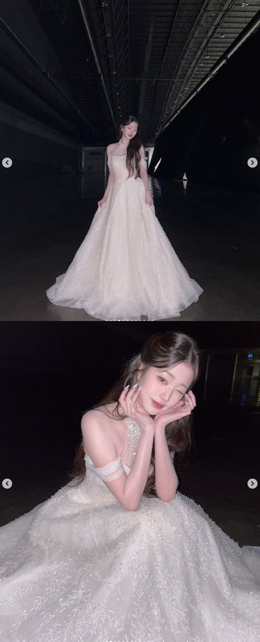 새해 첫 게시물로 공개 한 사진 속 장원영은 순백의 드레스를 입고 미모를 과시하고 있다. MC인 장원영은 대기 중 장난스럽게 포즈를 취하고 미소를 지으며 즐거움을 표현하고 있다. 어두운 곳에서 찍은 사진도 화보 사진처럼 화사하고 뽀얀 미모를 자랑한다.