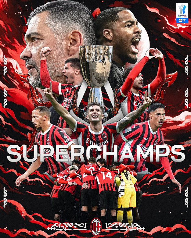 AC밀란은 7일(한국시각) 사우디아라비아 리야드의 킹 사우드 유니버시티 스타디움에서 열린 인터밀란과의 '2024~2025 이탈리아 슈퍼컵' 결승에서 3-2로 역전승을 거뒀다.