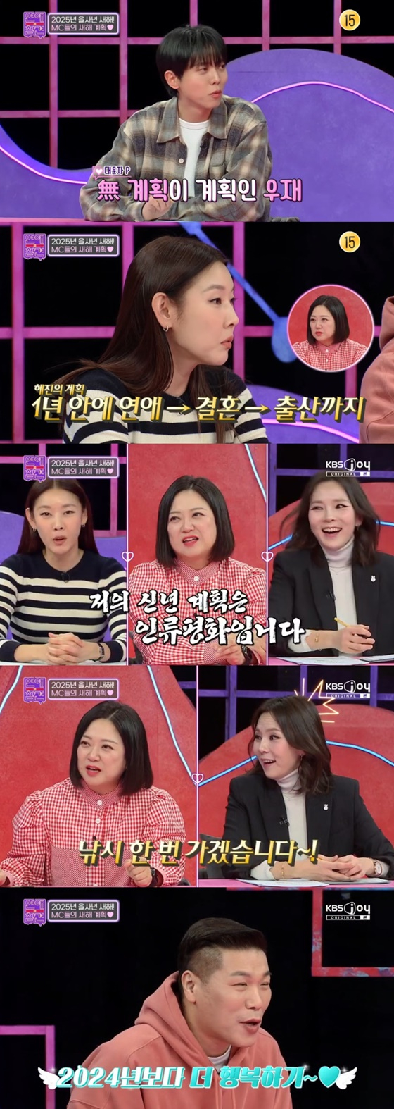 7일 방송된 KBS JOY 예능 프로그램 '연애의 참견' 오프닝에서 MC 서장훈, 곽정은, 김숙, 주우재, 한혜진이 새해 계획을 밝혔다.