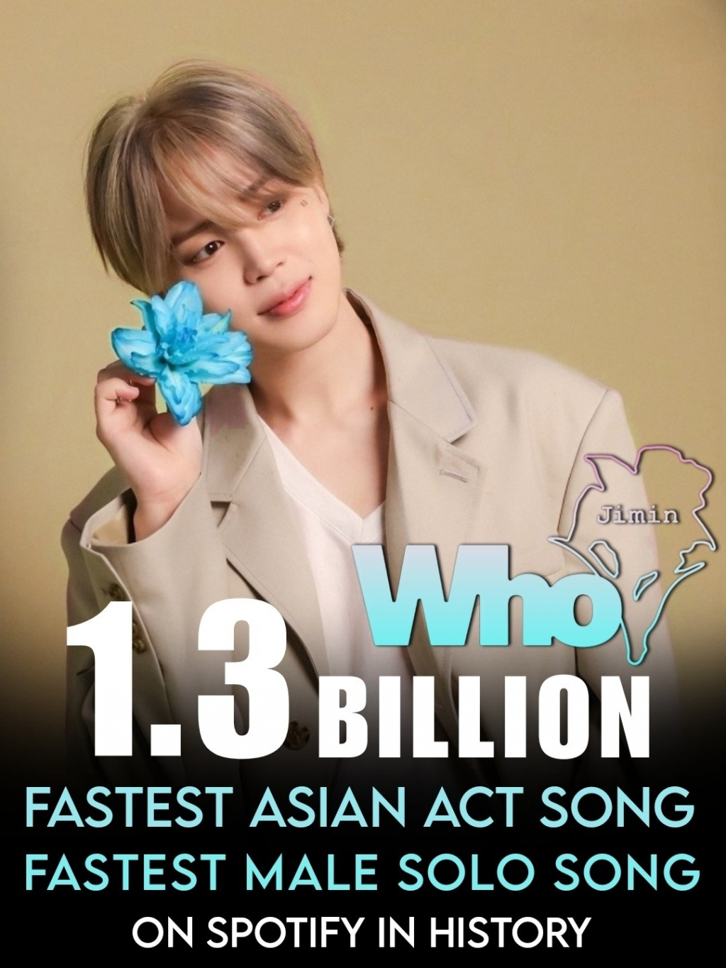 지민의 솔로 2집 'MUSE'(뮤즈) 타이틀곡 'Who'(후)는 1월 7일 스포티파이에서 13억 스트리밍을 돌파했다. 발매 171일 만의 대기록이자 아시안 아티스트의 곡 중 최단 기간 신기록이다.