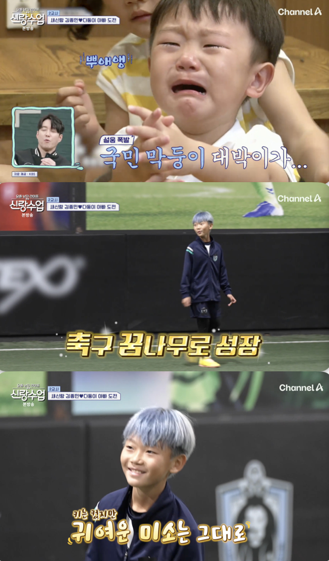 올해 안에 2세 계획을 밝힌 김종민에게 이동국은 "좋은 아빠가 되기 위해서는 체력이 있어야 한다"라며 '축구 꿈나무'로 성장 중인 막내아들 시안과 5분간 '1 대 1 축구 시합'을 해보라고 권했다.