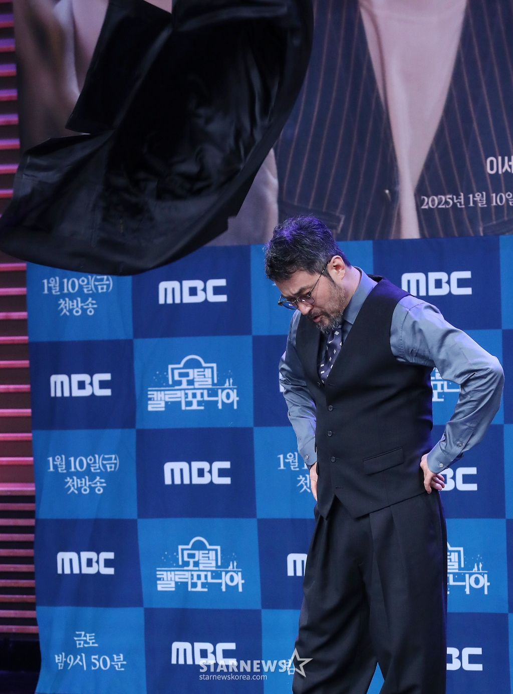 배우 최민수가 9일 오후 서울 마포구 상암동 MBC사옥에서 진행된 금토드라마 '모텔 캘리포니아' 제작발표회에 참석해 포즈를 취하고 있다.