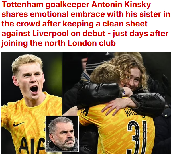겨울 이적시장에 토트넘 옷을 입게 된 신입 골키퍼가 맹활약을 펼쳤다. SK슬라비아 프라하를 떠나 토트넘에 합류한 안토닌 킨스키(21)는 잉글랜드 프리미어리그(EPL) 단독 선두 리버풀을 상대로 맹활약을 펼쳤다.