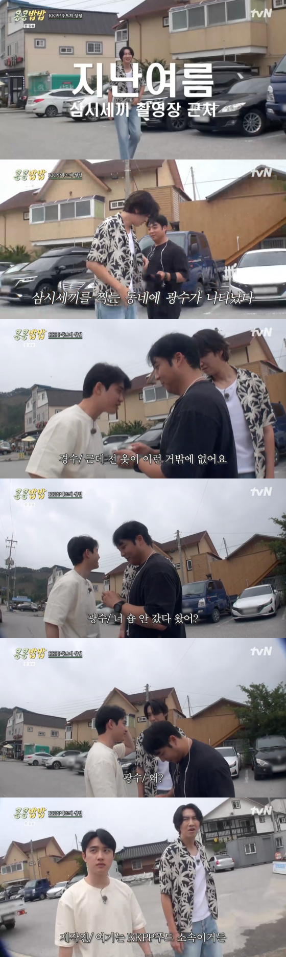 9일 첫 방송된 tvN 예능 프로그램 '콩 심은 데 콩 나고 밥 먹으면 밥심 난다'에서는 콩콩팥팥 푸드, 일명 KKPP 푸드에 발을 들이는 이광수와 도경수의 모습이 그려졌다.