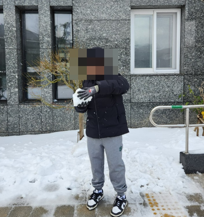사진에는 최동석이 박지윤과 이혼 후 면접교섭을 통해 자녀들과 만나 눈사람을 만드는 시간을 가졌다.