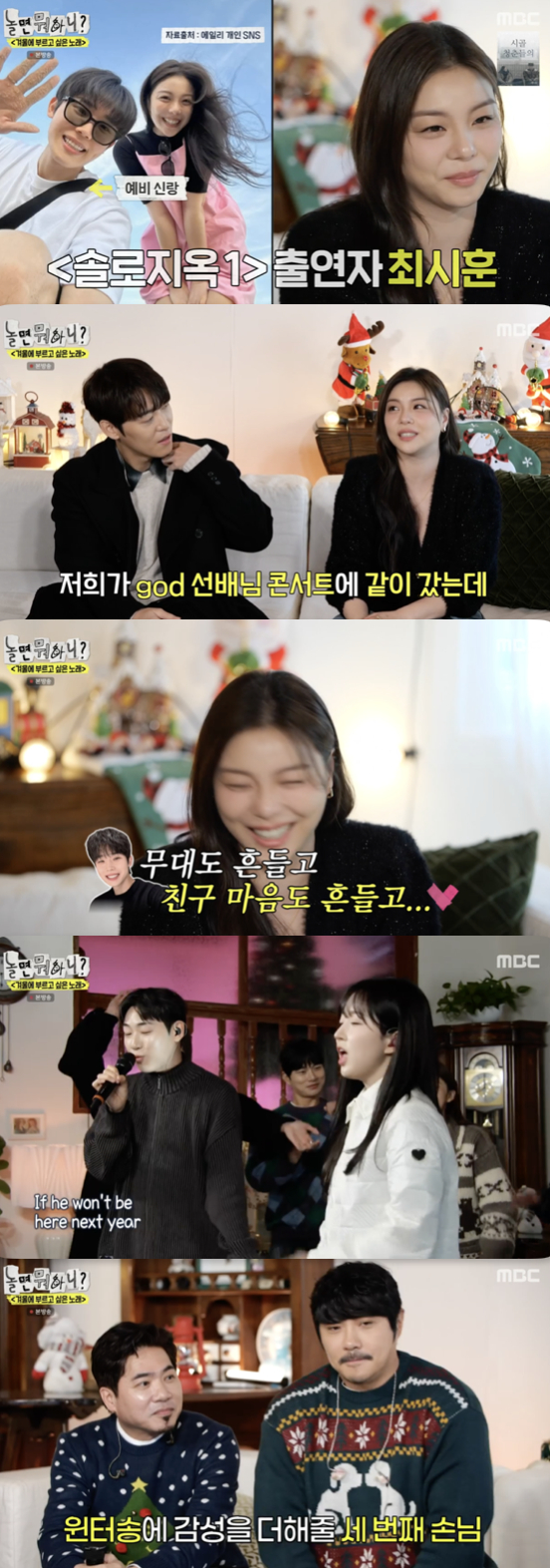 11일 방송된 MBC 예능프로그램 '놀면 뭐하니?(이하 '놀뭐')'는 2주간 결방으로 편성이 미뤄지며 '13월의 크리스마스' 편이 꾸며졌다. 겨울을 대표하는 목소리 6명이 등장해 윈터송을 선사했다.