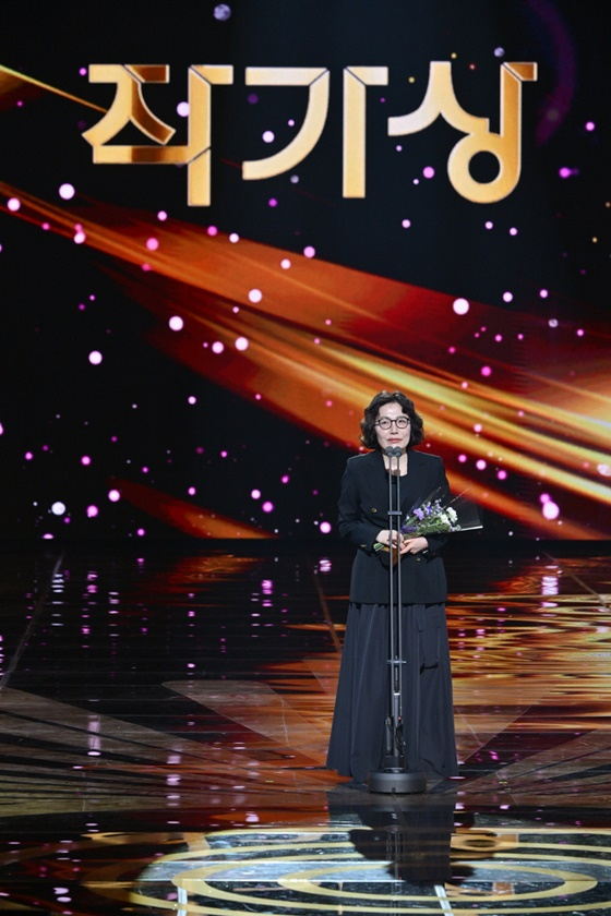 이날 '작가상' 트로피는 주말드라마 '다리미 패밀리'의 서숙향 작가가 가져갔다. 그는 "한창 드라마가 나가는 중에 이 자리에 섰다. 첫 대본 전체 리딩 때 봤던 배우분들을 다시 볼 수 있어서 일단 참 좋다"라고 밝혔다.