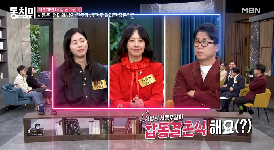 이를 들은 최홍림이 "합동결혼식 어떠냐"고 권하자 서동주가 "너무 싫다"고 거부했고 "나는 나중에 피어난 스타일이고. 엄마는 항상 예쁘니까. 늘 제가 비교 대상이 됐다. 그날만큼은 각자 주인공이 되고 싶다. 엄마는 무조건 한복을 입힐 것"이라고 답했다.