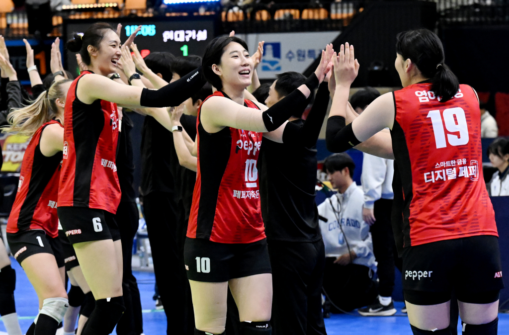 페퍼저축은행은 12일 수원체육관에서 열린 도드람 2024~2025시즌 V리그 여자부 4라운드에서 현대건설에 세트 스코어 3-1(25-21, 13-25, 25-19, 26-24)로 이겼다.