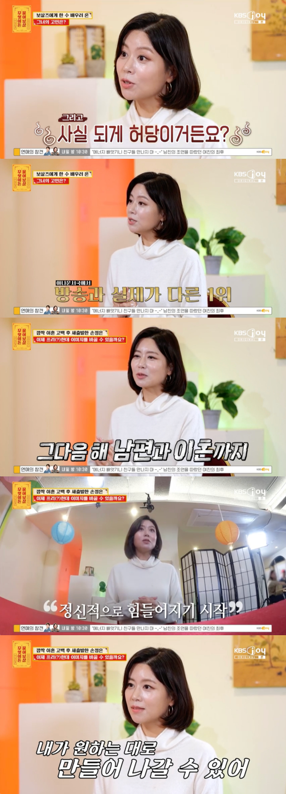 13일 방송된 KBS Joy 예능 프로그램 '무엇이든 물어보살'에는 손정은 전 MBC 아나운서가 출연했다.