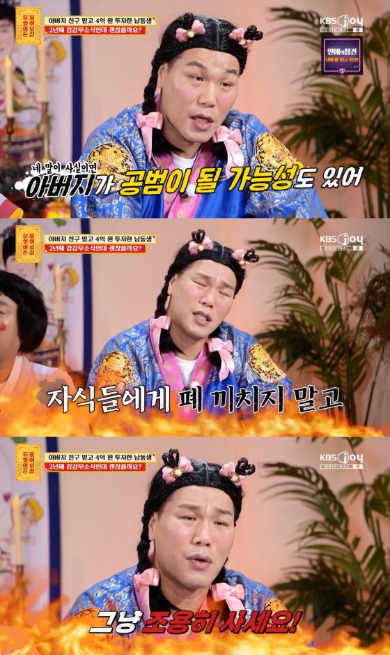 13일 방송된 KBS Joy 예능 프로그램 '무엇이든 물어보살'에는 평생 고물상을 하며 모은 돈 4억 원을 날릴 위기에 처한 사연자가 출연했다.