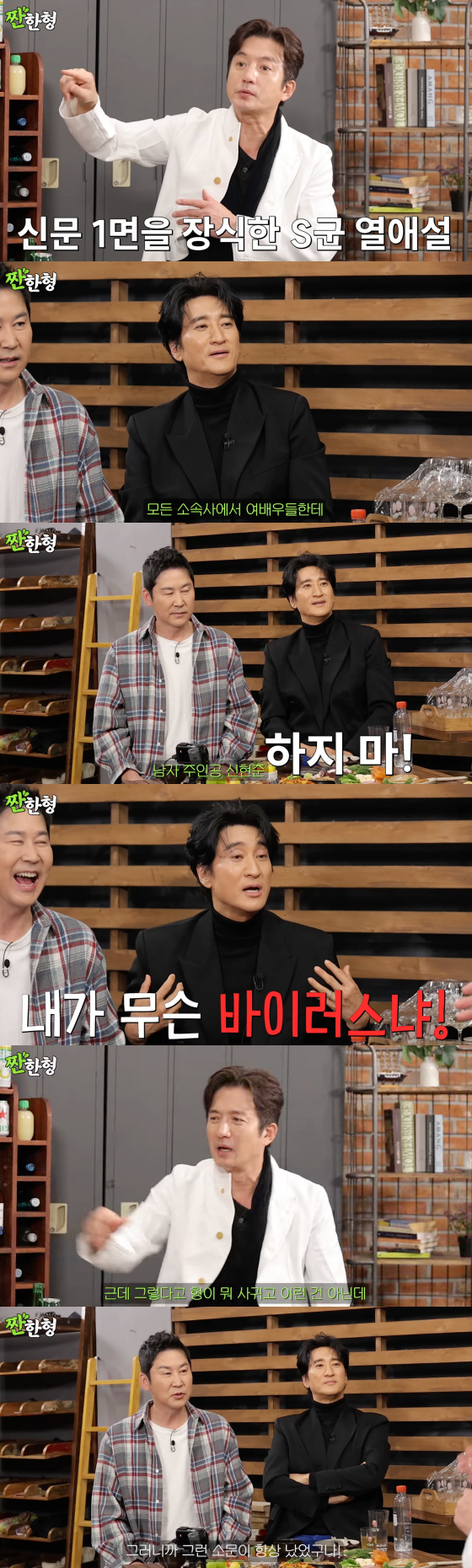 이에 신현준이 "염문설 자체도 오랜만에 듣는다"고 말하자 정준호는 "예전에 신문에도 가끔 'S군 스캔들', '톱스타 S군' 이러면서 기사가 나왔다. 그래서 모든 소속사에서 작품 상대 배우가 신현준이면 하지 말라고 했다"고 폭로했다.
