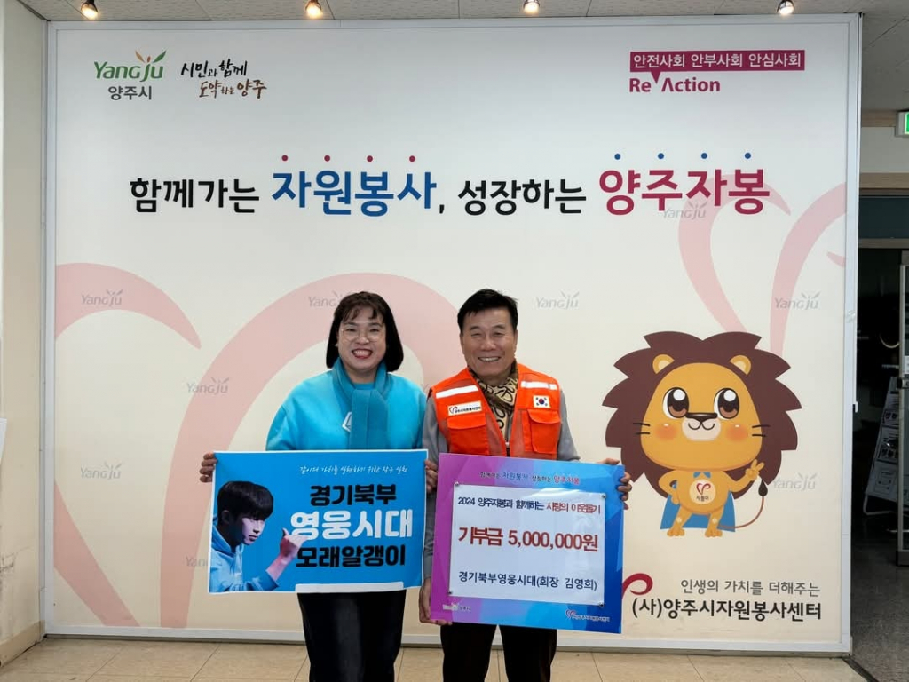 임영웅 팬클럽 경기 북부 영웅시대 봉사 단체 '모래 알갱이'는 1월 9일 경기 양주시 (사)양주시자원봉사센터에 어려운 이웃을 위한 기부금 500만 원을 기탁했다.