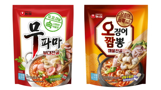 농심이 전골요리 콘셉트의 냉동 밀키트(간편조리세트) 신제품 '무파마 부대전골'과 '오징어짬뽕 해물전골'을 출시한다. 농심 인기 라면 브랜드 '무파마탕면'과 '오징어짬뽕' 고유의 맛을 살리고, 전골요리에 잘 어울리는 원물 재료를 더한 제품이다.