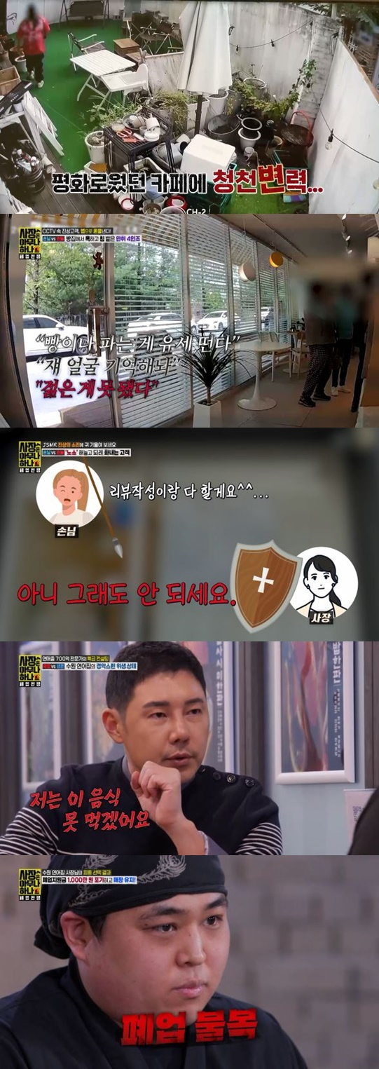 우선 사장들의 CCTV 제보로 구성된 영상이 공개됐는데, 한 손님은 화장실이 코앞에 있는데도 카페 테라스에 '대변 테러'를 하고 사라져 모두를 경악케 했다. 이를 본 김혜진-이경민 변호사는 "손괴죄, 영업방해죄, 공연음란죄 소지와 민사소송 가능성이 있다"고 법률적 대처 방안을 제시했다.