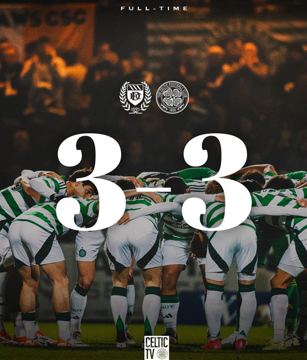 셀틱은 15일(한국시간) 스코틀랜드 던디의 덴스 파크에서 열린 던디FC와의 '2024~2025시즌 스코틀랜드 프리미어십' 17라운드(순연 경기)에서 3-3으로 비겼다. 3연승이 마감된 셀틱은 승점 60(19승3무1패)으로 리그 선두를 질주했다.