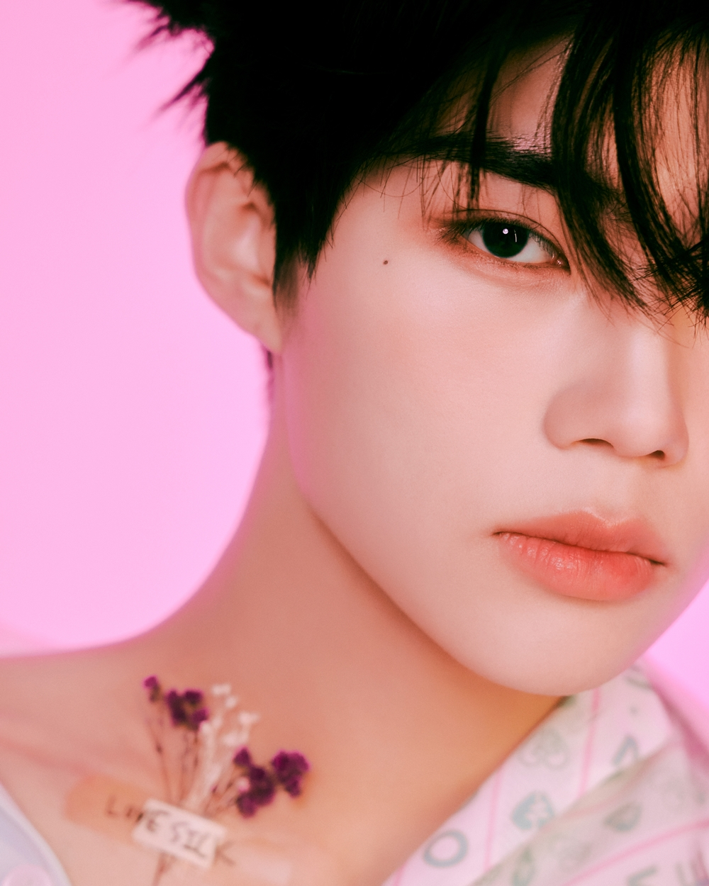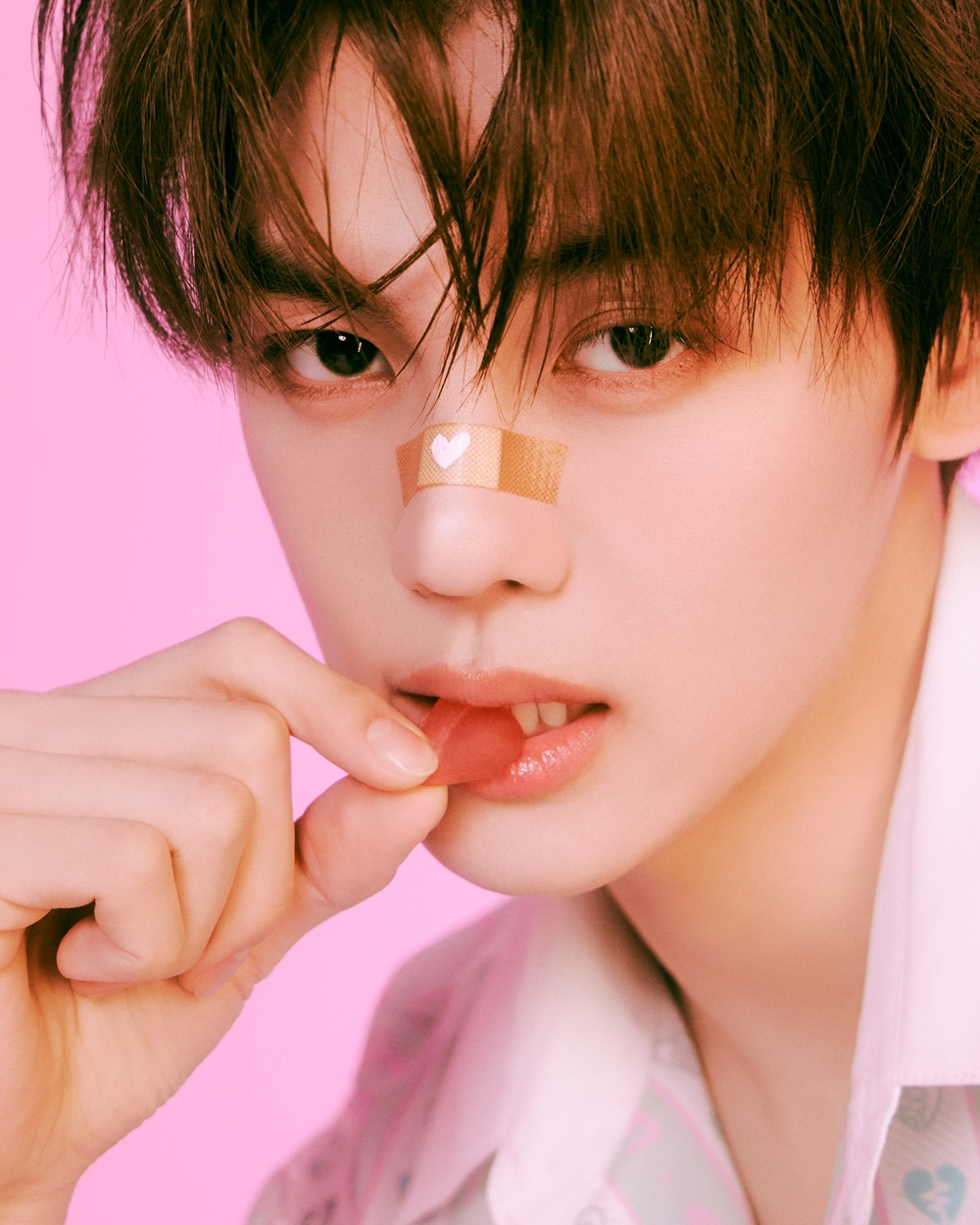 공개된 사진 속 ZEROBASEONE은 키치한 무드의 핑크톤 배경에서 마치 사랑에 빠진 듯한 모습이다. 멤버들의 얼굴 등에는 'LOVE'나 하트 모양이 그려져 있는 밴드가 붙여져 있어 눈길을 끈다.