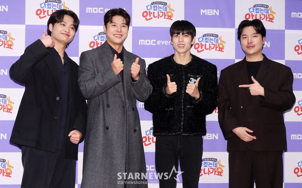 뮤지컬 배우 황성재, 배우 신정윤, 인피티느 동우, 래퍼 지조가 17일 오전 서울 마포구 상암동 스탠포드 호텔에서 진행된 MBC에브리원 '다 컸는데 안 나가요' 제작발표회에 참석해 포즈를 취하고 있다. '다 컸는데 안 나가요'는 높은 물가와 집값 상승으로 청년 2명 중 1명이 '캥거루족'이라는 요즘 시대에 부모님과 함께 살아가는 스타들의 일상을 공개하는 관찰 예능 프로그램이다. 오는 18일 첫 방송. 2025.01.17 /사진=김창현 chmt@