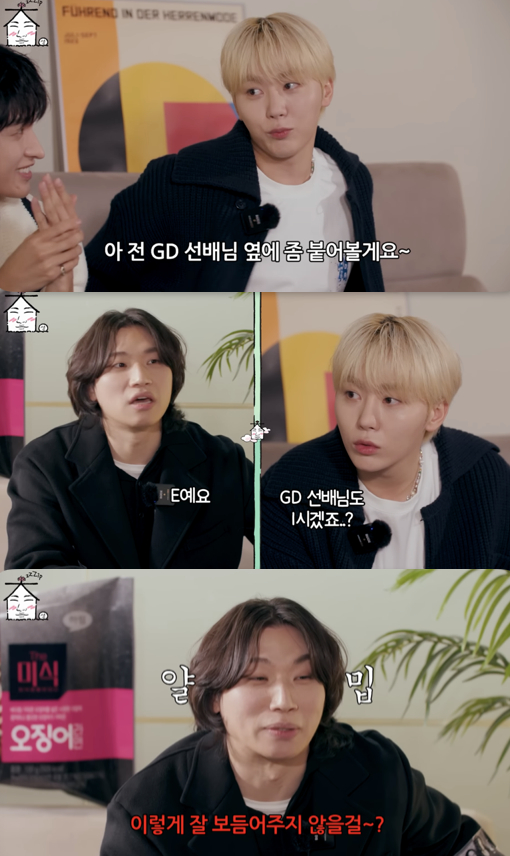 하지만 대성은 "근데 'E'라고 (지드래곤 형이) 나처럼 이렇게 잘 보듬어주지 않을 걸"라고 받아쳐 또다시 부승관을 머쓱하게 했다.