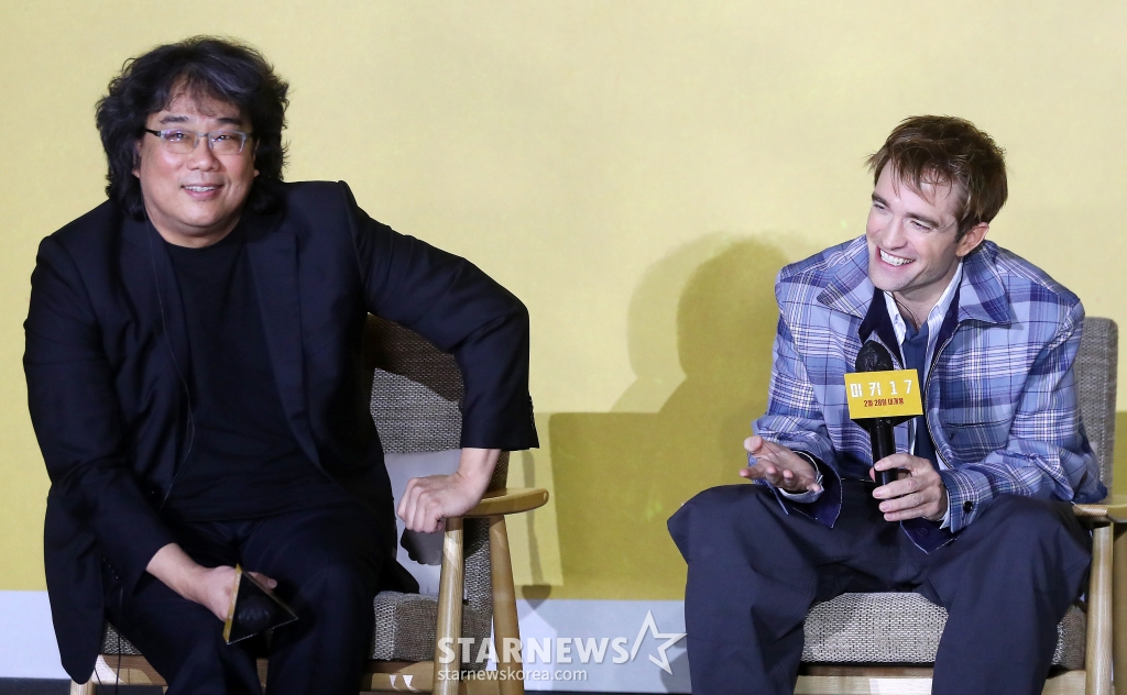 할리우드 배우 로버트 패틴슨이 20일 오전 서울 용산구 아이파크몰 CGV에서 진행된 영화 '미키17' 기자간담회에서 취재진 질의에 답하고 있다.