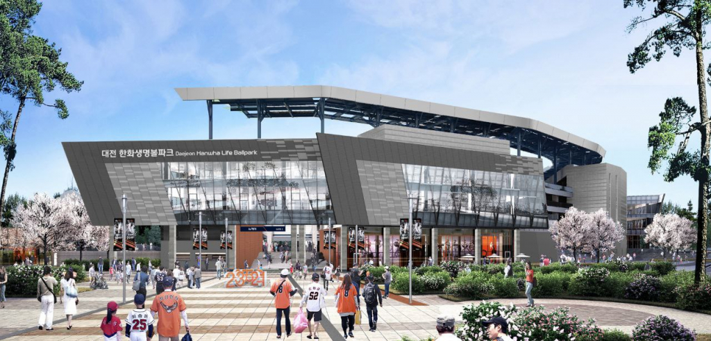 한화는 건축 과정에서 홈 프렌들리 콘셉트에 맞춘 비대칭성의 구현, 선수와 팬 · 시민 편의성 제고 등을 위한 100개 이상의 항목에 대한 기본설계 수정안을 대전시에 제안했다. 이어 대전시가 그중 대부분 안을 전향적으로 받아들이면서 아시아권 최초 복층 불펜, 인피니티풀 등을 포함하는 그동안 KBO 리그에서 볼 수 없었던 신축구장이 팬들을 찾아간다.