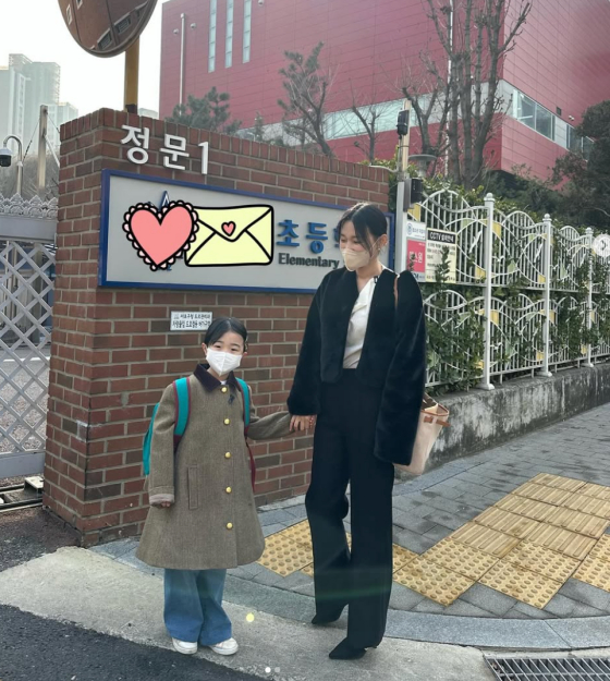 공개된 사진에는 이지혜와 그의 첫째 딸 태리가 손을 잡고 한 초등학교 정문 앞에 선 모습이 담겼다.