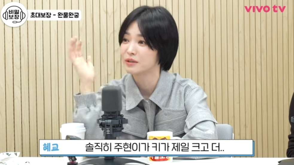 이에 송혜교는 "상상을 해보니까 솔직히 옥주현이 키가 제일 크고 더 듬직한데 둘이 간다는게"라며 머쓱해했고 송은이는 "상대가 위헣ㅁ해서라기보다 옥주현이 사고칠까봐 갔었나?"라고 반문하기도 했다.