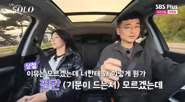22일 방송된 ENA, SBS Plus '나는 솔로'에서 옥순과 상철이 데이트에 나섰다. 상철은 "겉으로 쿨한 척하는데 마음이 약하다"라며 "동족 냄새가 난다. 그렇다고 피하진 않았고 호기심 생기는 사람으로 옥순을 얘기했는데 네가 너무 얄미웠다"라고 말했다.
