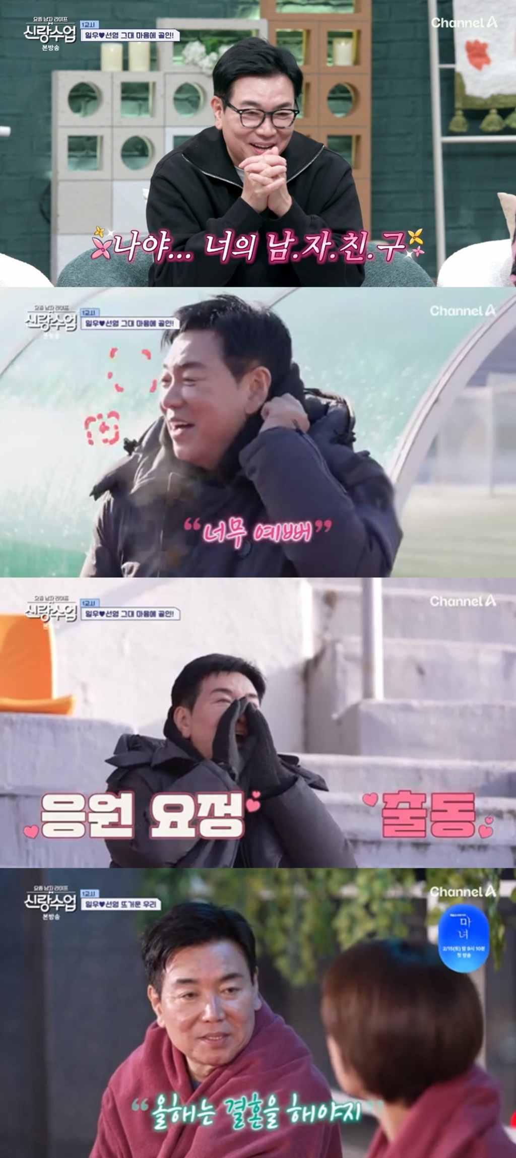 김일우는 지난 22일 채널A 예능 프로그램 '요즘 남자 라이프 신랑수업'(이하 '신랑수업')에서 배우 박선영의 축구 경기를 구경하거나, 그와 찜질방 데이트를 즐겼다.