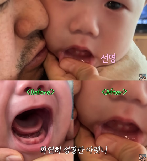 그러던 중 이은형과 강재준은 아들의 이가 나고 있음을 발견했다. 이에 강재준은 "장하다. 너무 귀엽다"며 기특해했다.