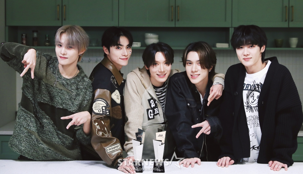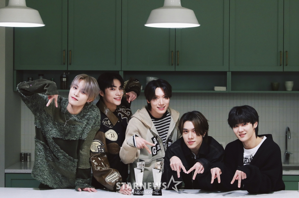 웨이션브이(WayV)가 서울 성동구 SM엔터테인먼트 사옥에서 진행된 '제 9회 아시아 아티스트 어워즈'(The 9th Asia Artist Awards, 이하 'AAA 2024')' 수상 인터뷰에 앞서 포즈를 취하고 있다.