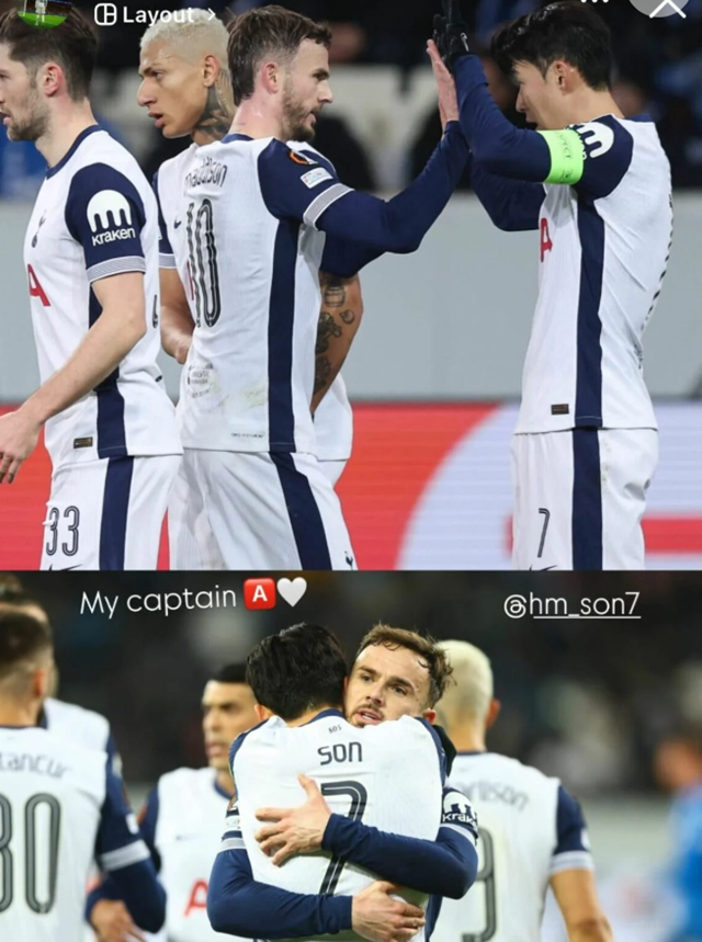 '캡틴' 손흥민(33)의 멀티골 활약에 '토트넘 부주장' 제임스 매디슨(29)도 존경심 가득한 진심을 전했다.