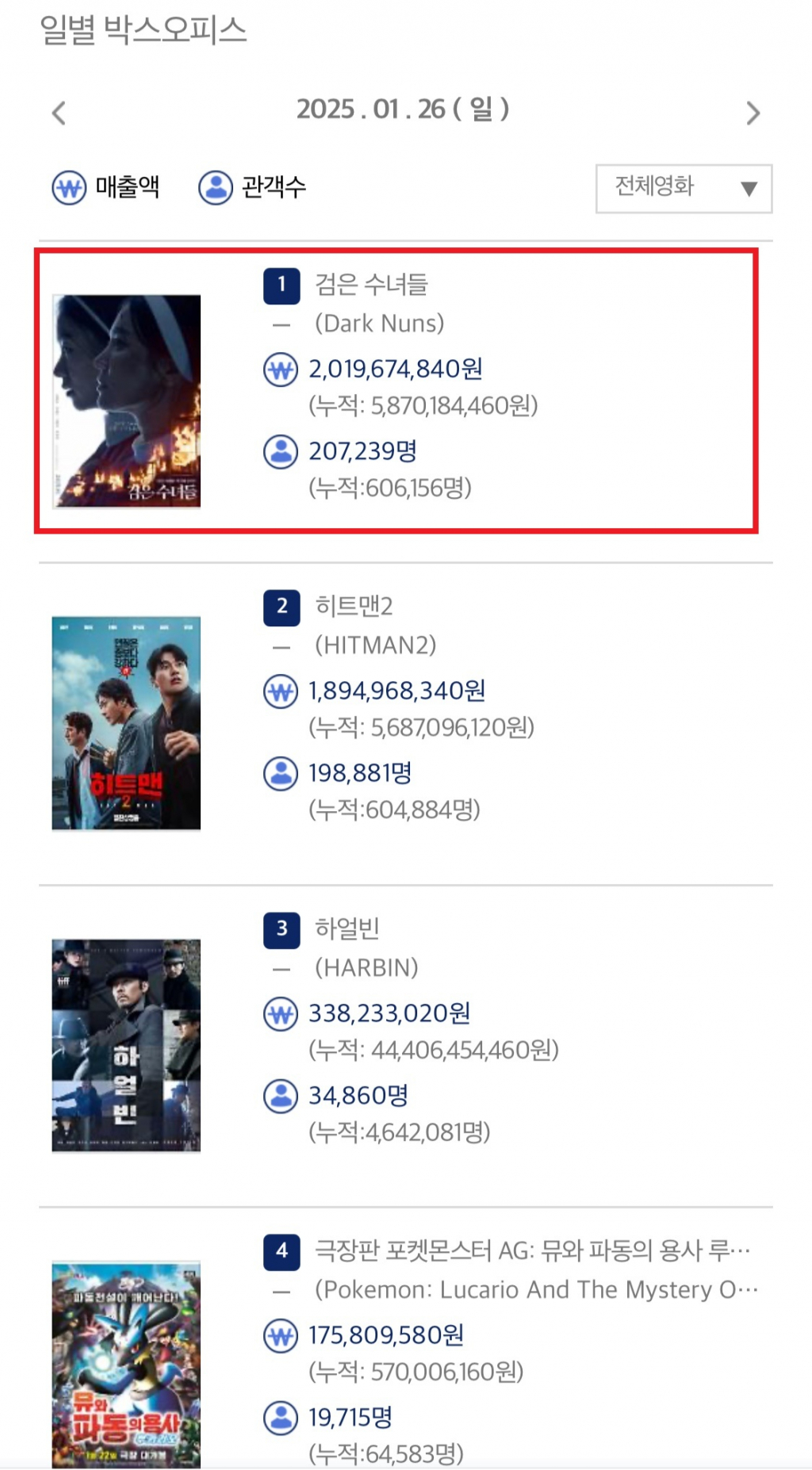 영화 '검은 수녀들'(감독 권혁재)이 개봉 첫 주 국내뿐만 아니라, 동시기 개봉한 인도네시아에서 압도적 박스오피스 1위에 오르며 글로벌 흥행세에 박차를 가하고 있다.