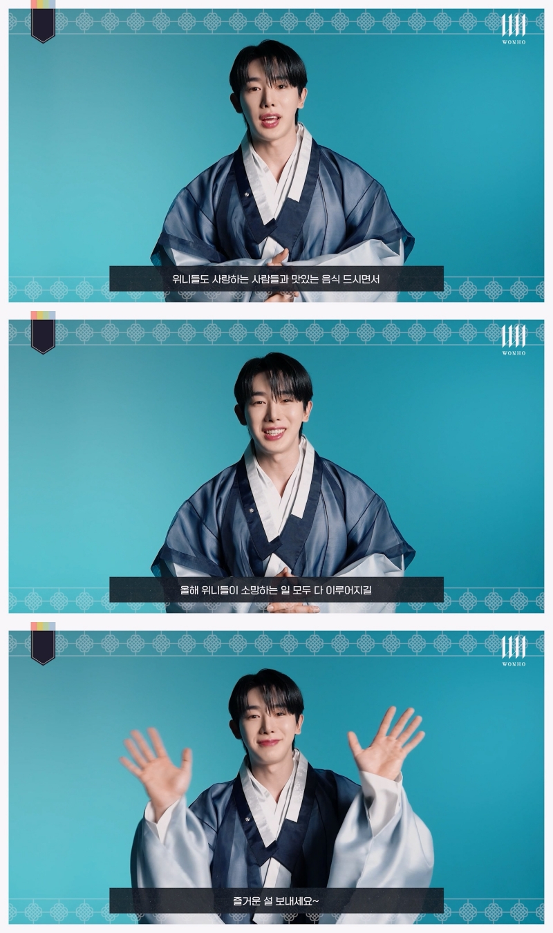 공개된 영상에서 원호는 "어느새 민족 대명절 설날이 다가왔다. 가족들과 따뜻한 시간을 보내는 명절인데, 위니(원호 공식 팬클럽명)들도 사랑하는 사람들과 맛있는 음식 드시면서 행복 가득한 설 연휴 보내셨으면 좋겠다"라고 활기찬 인사를 전했다.