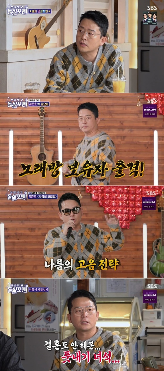 김준호는 지난 28일 방송된 SBS 예능 프로그램 '돌싱포맨'에서 트로트 4인방 가수 진성, 홍진영, 박지현, 요요미와 함께 명절 연휴 웃음을 책임졌다.