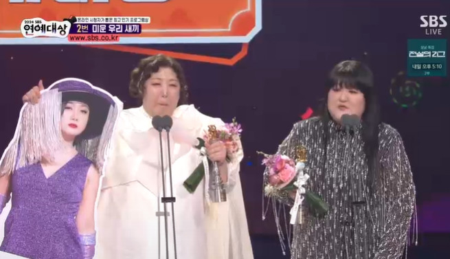 '2024 SBS 연예대상'에서 개그우먼 신기루, 이국주, 박나래, 유튜버 풍자 등 '덩치 서바이벌-먹찌빠' 팀이 '베스트 케미상'을 수상했다.