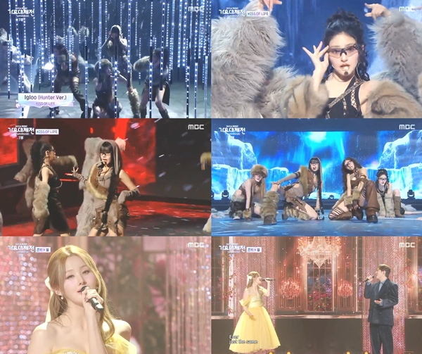 KISS OF LIFE(키스오브라이프)는 29일 오후 방송된 '설 특집 MBC 가요대제전'에 출격했다. 이날 미니 3집 수록곡 'Igloo'로 무대를 꾸민 이들은 우리 속에 갇힌 와일드한 면모의 헌터로 변신, 강렬한 매력을 발산한 인트로로 무대를 열었고 특유의 핫 걸 면모가 느껴지는 세련된 퍼포먼스로 분위기를 뜨겁게 달궜다.