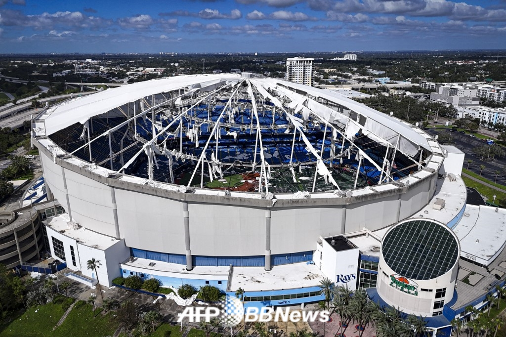 지난해 10월 허리케인 밀턴의 영향으로 지붕이 뜯긴 트로피카나 필드의 모습. /AFPBBNews=뉴스1