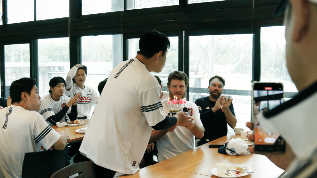 두산 동료들의 이방인을 향한 사랑이 느껴지는 모습이었다. 단, 문제는 생일 케이크를 구하는 일이었다. 두산 관계자에 따르면 캠프지인 시드니 블랙타운에는 한국과 달리 근사한 케이크를 파는 빵집이 많지 않았다고 한다. 이에 외국인 선수 담당 매니저가 무려 식료품점 4곳을 돌아다닌 끝에 간신히 케이크를 구할 수 있었다는 후문이다.