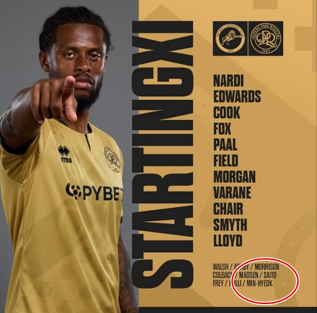 이번 경기를 통해 양민혁이 데뷔전을 치를 전망이다. 교체명단에 올랐다. 양민혁은 지난 달 30일 토트넘에서 QPR로 임대이적했다. 등번호는 전 소속팀 강원FC에서 달았던 47번을 받았다. 양민혁은 새로운 팀에 도착한지 얼마 되지 않았지만, 곧바로 출전 기회를 얻을 것으로 보인다.