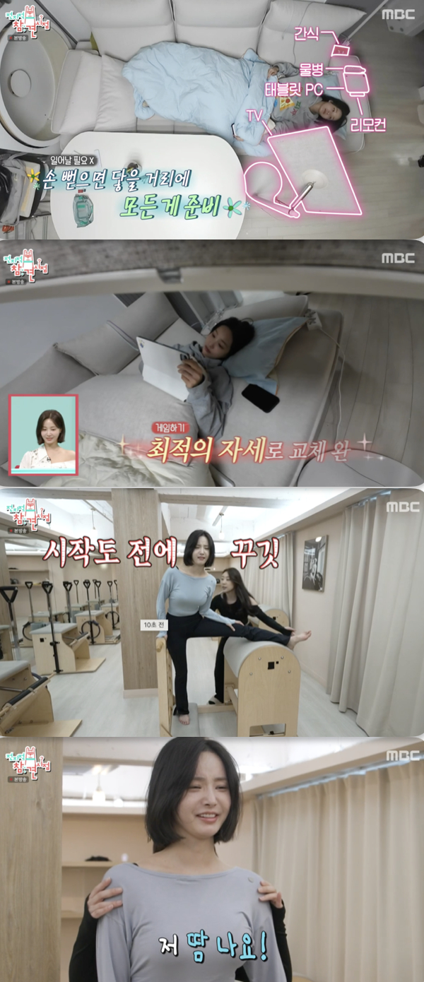 이날 드라마 속 차미령과 달리 소파 헤드에 다리를 올린 채 친근한 자세로 누워있는 연우의 모습이 포착됐다. 이어 그는 이동형 무선 스크린 TV를 이용해 공포 영상을 탐색하며 하루를 시작했다.