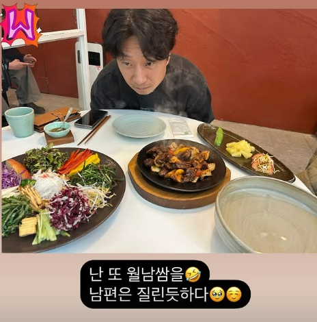 2일 오후 손담비는 개인 SNS에 "난 또 월남쌈을. 남편은 질린 듯하다"라며 이규혁 사진을 게재했다.