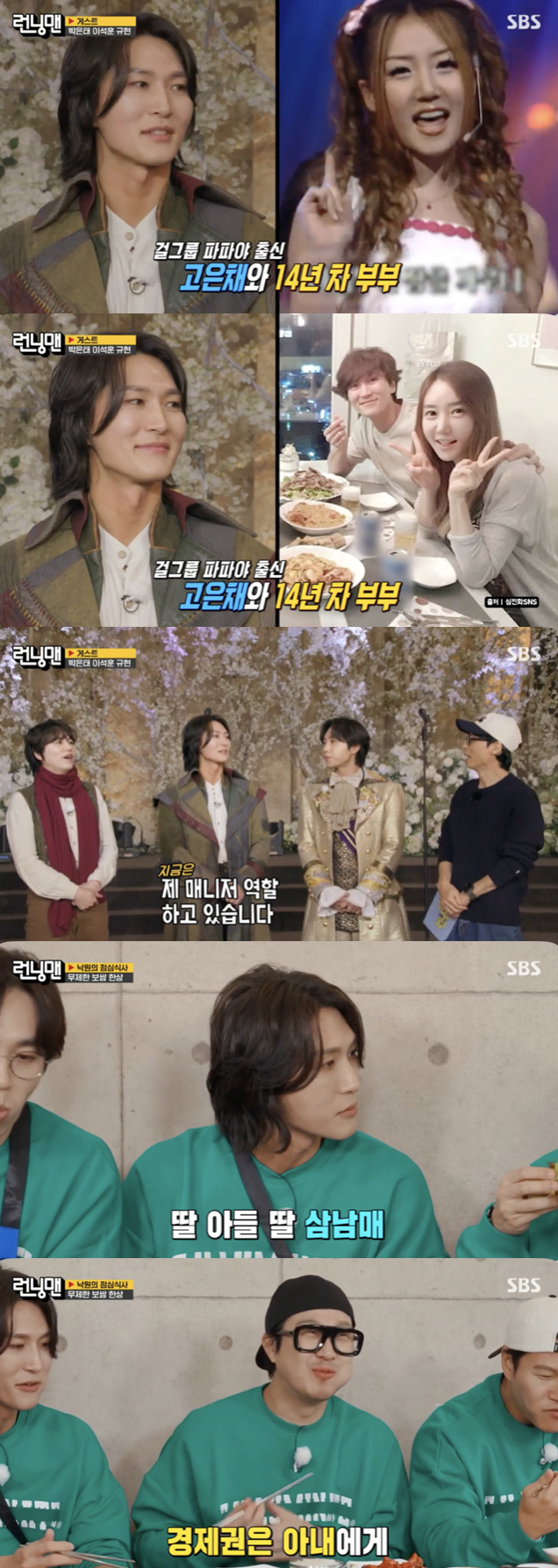 이후 박은태는 낙원 티켓 5장을 베팅해 점심 식사를 차지했다. 식사 중 박은태는 현재 1남 2녀로 삼남매의 아버지라 밝혔다. 지석진이 "어떻게 하다가 매니저를 와이프가 (하게 됐냐). 하루 종일 같이 다니면 (힘들지 않냐)"라고 묻자 그는 "이런 일 있을 때만 다닌다"라고 답했다.