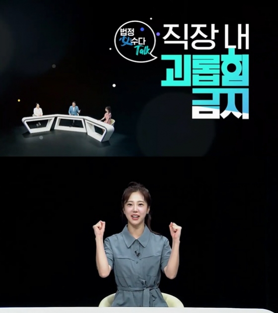 또한 지난 2일 인터넷 커뮤니티 등에는 김가영 기상캐스터가 촬영한 직장내 괴롭힘 방지 영상도 공개됐다. 영상에서 김가영은 김문선 노무사, 김현욱 아나운서등과 함께 직장내 괴롭힘 방지 홍보를 하고 있다.