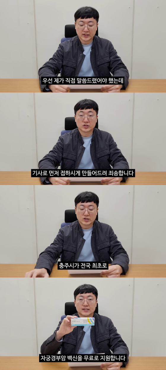 이어 "충주시가 전국 최초로 자궁경부암 백신을 무료로 지원한다"며 "대상은 충주에 주민등록을 둔 18세에서 26세 모든 여성이다"고 충주시 정책을 설명했다.