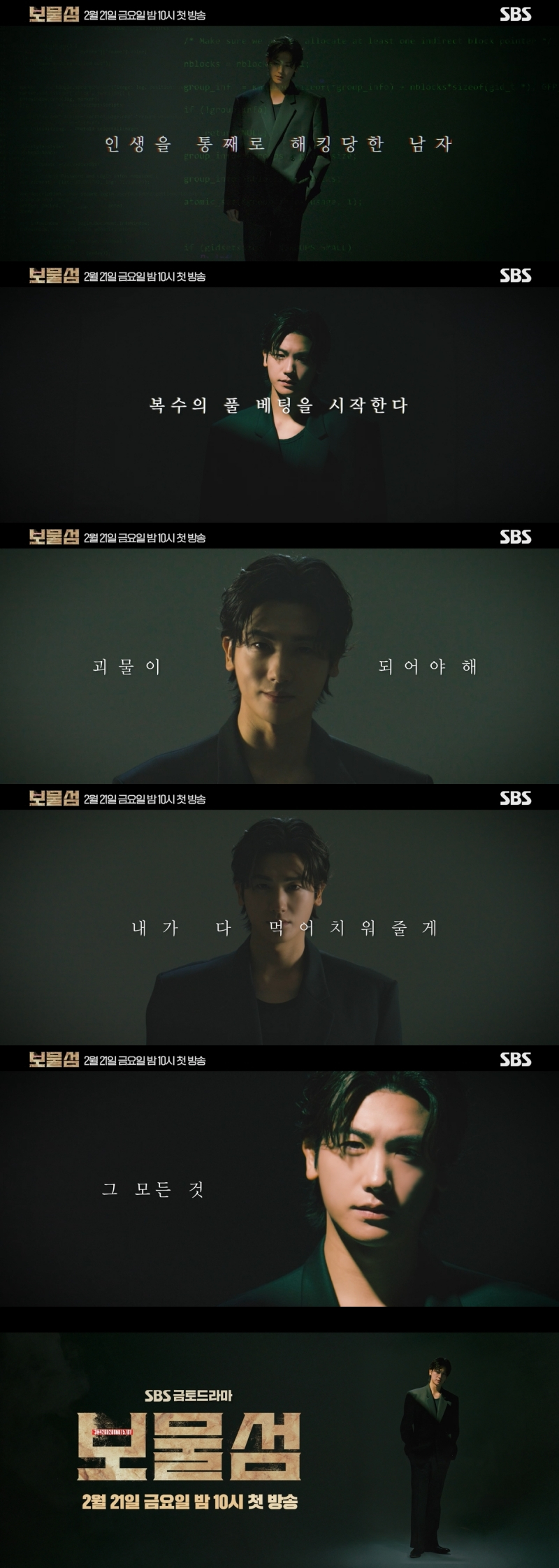 21일 밤 10시 첫 방송되는 SBS 새 금토드라마 '보물섬'(극본 이명희/연출 진창규/제작 스튜디오S, 에이투지엔터테인먼트, 푸르미르공작소)은 2조 원의 정치 비자금을 해킹한 서동주(박형식 분)가 자신을 죽인 절대 악과 그 세계를 무너뜨리기 위해 모든 것을 걸고 싸우는 인생 풀 베팅 복수극이다. 안방극장에 폭풍처럼 휘몰아칠 '흡인력 끝판왕' 드라마를 예고하며 주목해야 할 기대작에 등극했다.