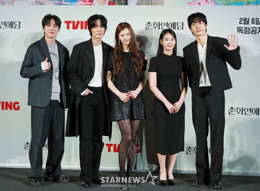 5일 오후 서울 CGV용산 아이파크몰에서 티빙 드라마 '춘화연애담' 제작발표회가 열렸다. 이광영 감독, 고아라, 장률, 강찬희(그룹 SF9 찬희), 손우현, 한승연이 참석했다.